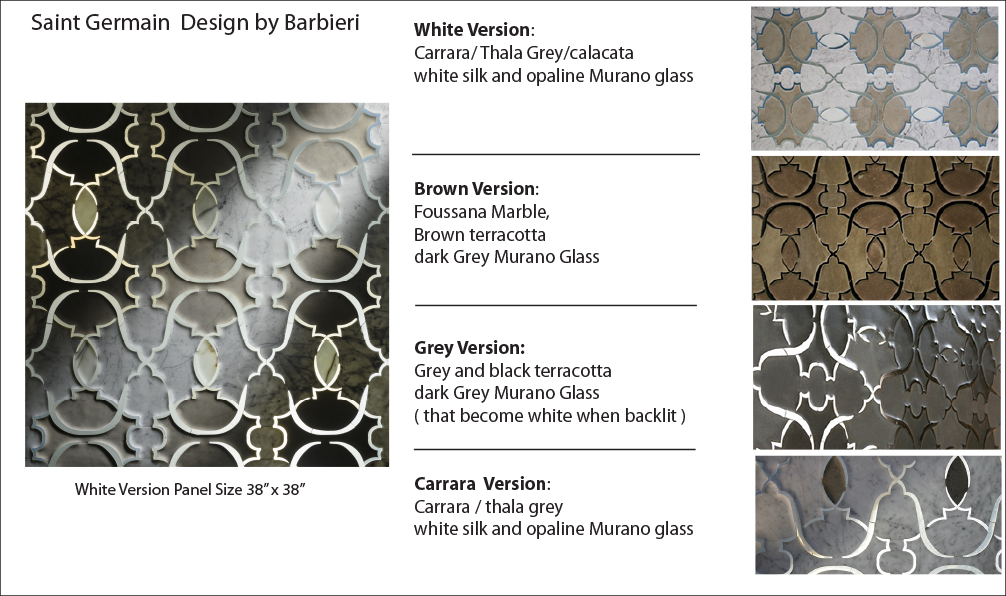 featuring a unique dual aesthetic result : a three-dimensional surface with grazing light of Murano Glass in relief,